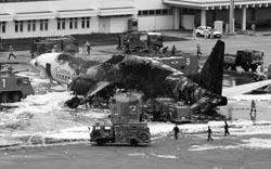 | A China Airlines plane caught fire after landing at Naha on Japan's southern island of Okinawa on Monday. All 157 passengers and eight crew were out of danger. | ||||||