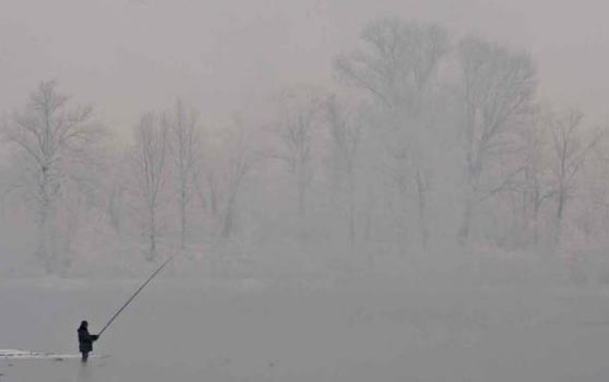 A man fishes at the Yenisei River, near the Siberian city of Krasnoyarsk, about 3,400 kilometres east of Moscow early Wednesday. Although temperatures are below freezing, the river is still clear of ice.